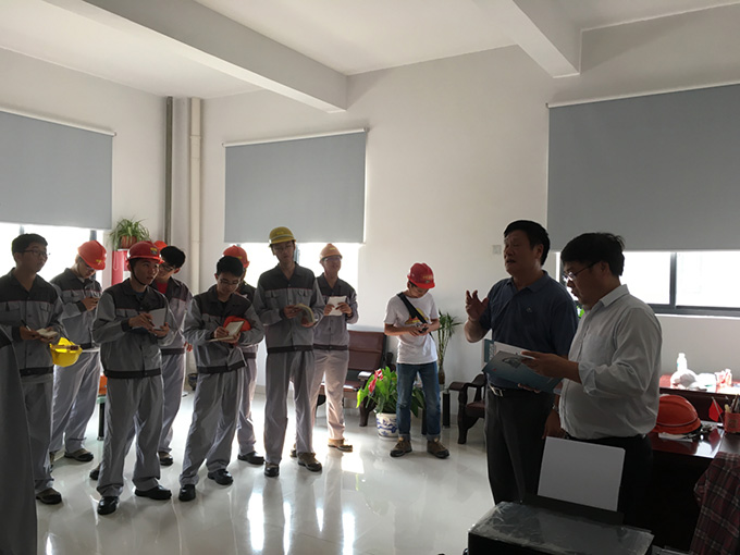 中國礦業大學化工學院學員來我公司參觀實習 2016年7月29日上午,中國礦業大學化工學院王教授攜40多名學員來我公司廠部進行參觀學習。 我公司領導熱情接待,首先公司領導鄧總給學生們簡單介紹了我司的主要產品,以及產品應用,接著王教授進行補充講解。 隨后學員們在公司領導的帶領下來到車間進行參觀學習。 炎炎夏日,學員們不畏酷暑,參觀設備,產品,認真記錄。